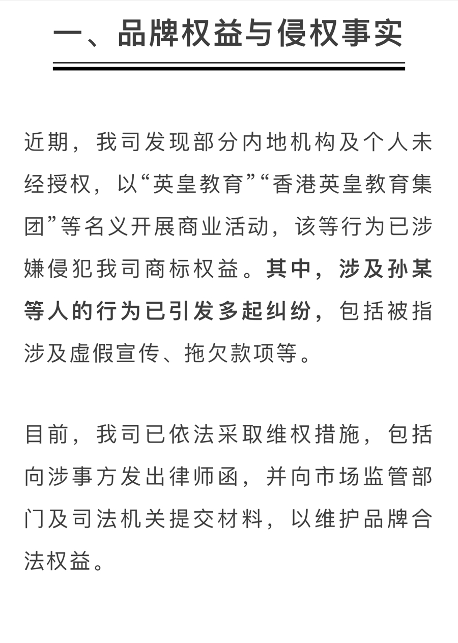 “英皇教育”的公告。网络截图